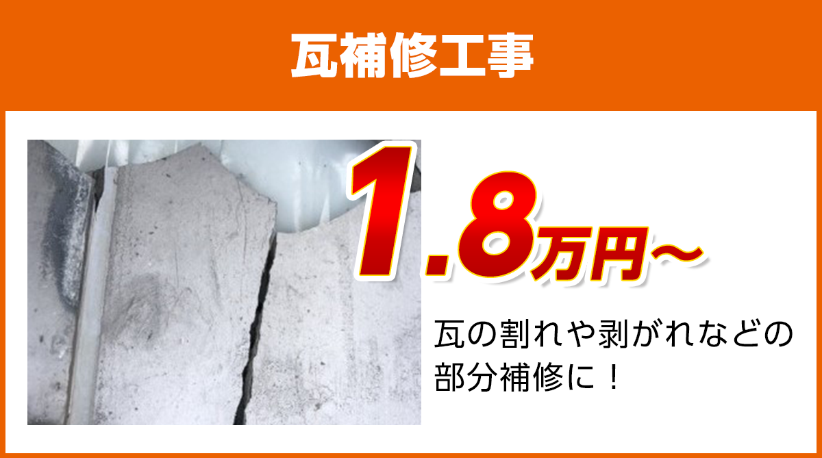 広島の瓦補修工事料金 瓦のひび割れ、剥がれに
